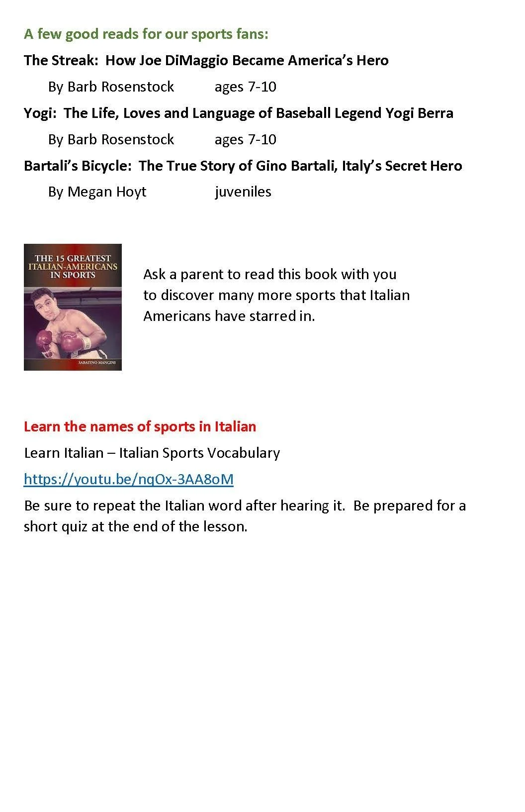Italian Heritage Month - Sports Oct 14 Written By Susie Christiansen Learn about Italians and Italian-Americans who competed at the highest levels of professional sports! Susie Christiansen